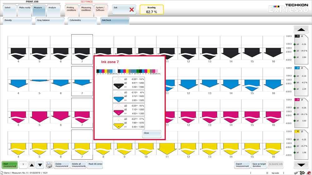 Danvers, MA, February 8, 2019 – Techkon USA, the innovation leader in high-precision color measurement solutions for the global print and packaging communities – announces the launch of an entirely new scanning solution for the sheetfed offset market with the SpectroDens Handheld & Scanning SpectroDensitometer.  The SpectroDens, coupled with Techkon’s Expresso software, will enable users to continuously scan color bars and see a visual representation of the results displayed by ink zone and printing units.