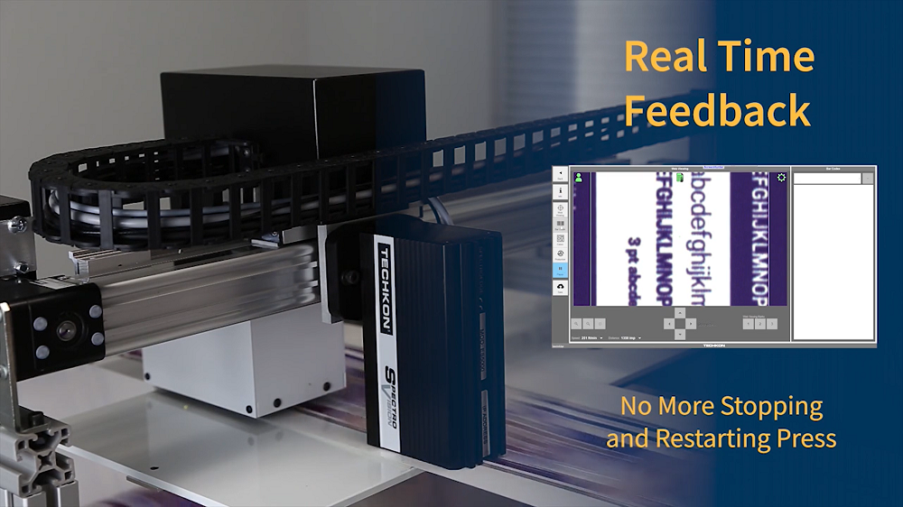 Each SpectroVision system is equipped with a high resolution 2D camera that is used to locate color bars and color measurement locations for the integrated spectrophotometer. However, when SpectroVision is not busy measuring color, it is then capable of providing a visual inspection of the moving web at full production press speeds.