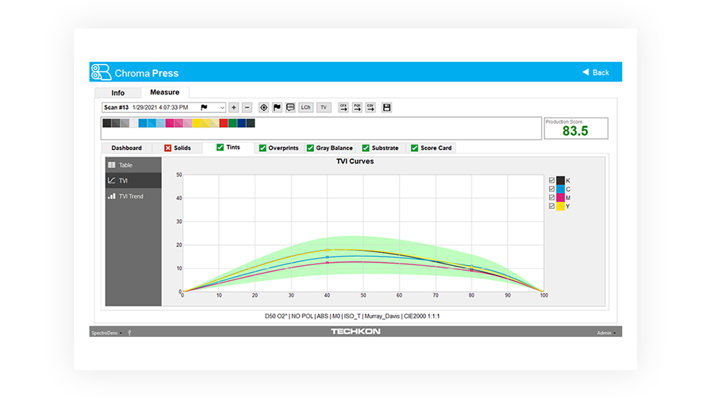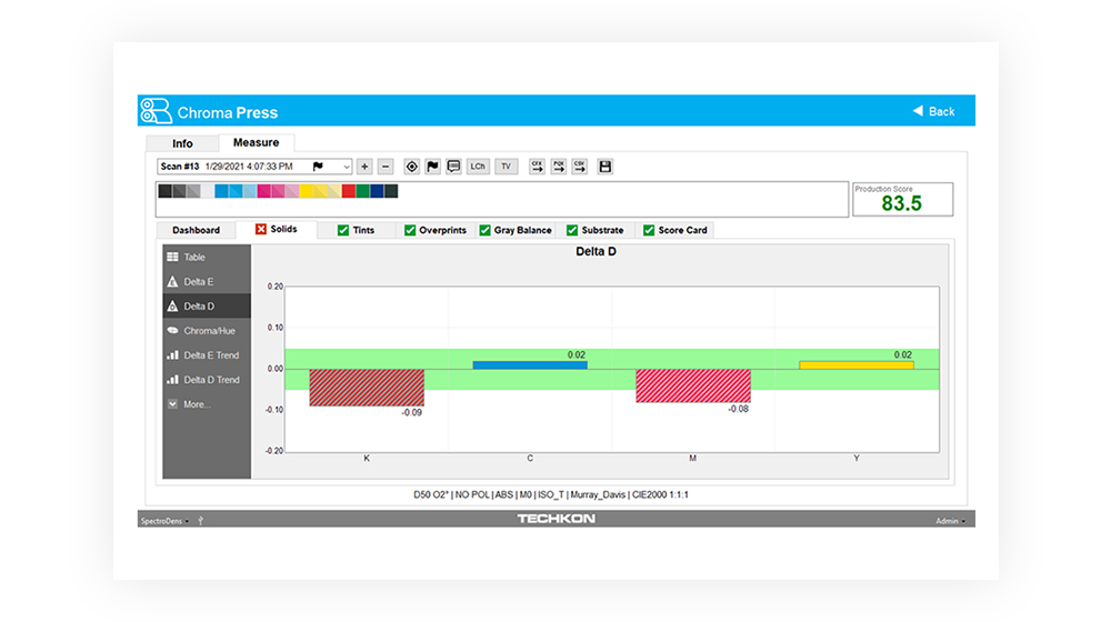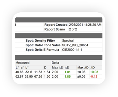 - InkCheck calculates precise density adjustments for the lowest ∆E’s on press.