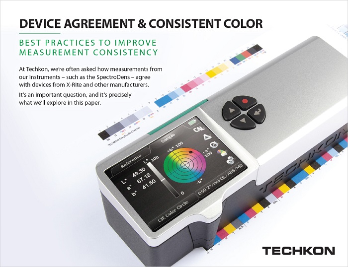 If your workflow involves both Techkon and X-Rite devices, download this whitepaper to learn more about improving agreement between instruments, regardless of brand, and make color measurement consistency a reliable part of your quality control process.