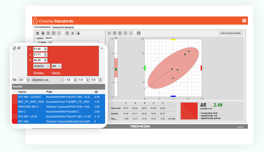 ChromaQA Ink is a cloud based software solution designed for packaging or commercial printers of any size that need a more efficient way to store, manage and share color standards throughout their organization. ChromaQA INK will save you time and money by quickly locating colors for jobs and identifying when new colors and drawdowns must be created for customers.