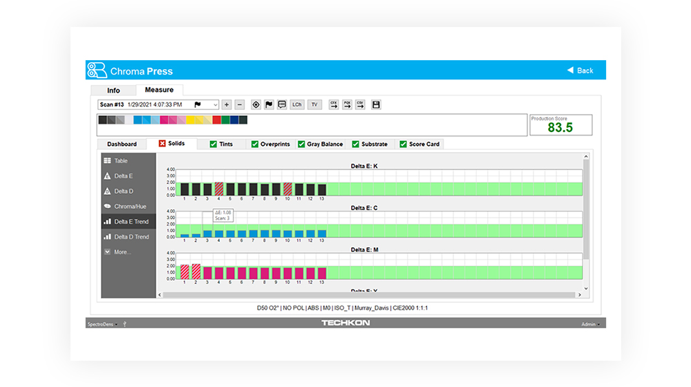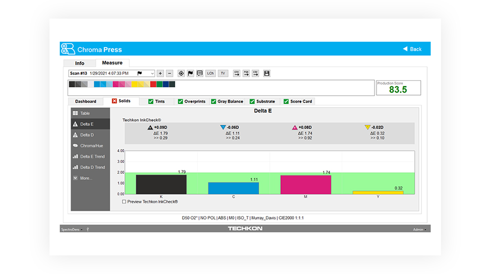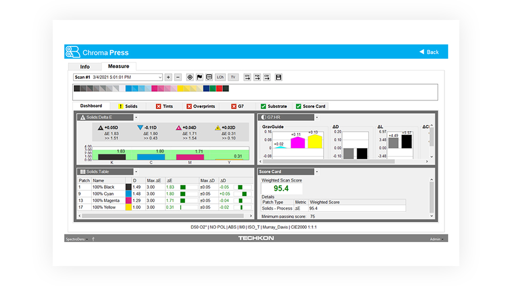 ChromaQA SUITE is an enterprise color quality solution that allows total color control across your print manufacturing process. ChromaQA SUITE builds upon the capabilities of ChromaQA INK and ChromaQA LITE, plus it adds advanced process control color metrics.