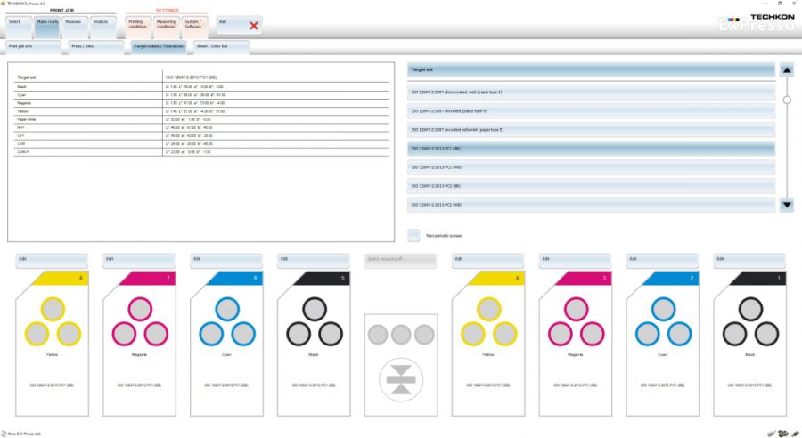 The program supports key industry standards, including optical brightener M1, M3 for wet ink densities as well as ISO 12647, PSO, IDEAlliance G7, GRACoL and SWOP 2013.