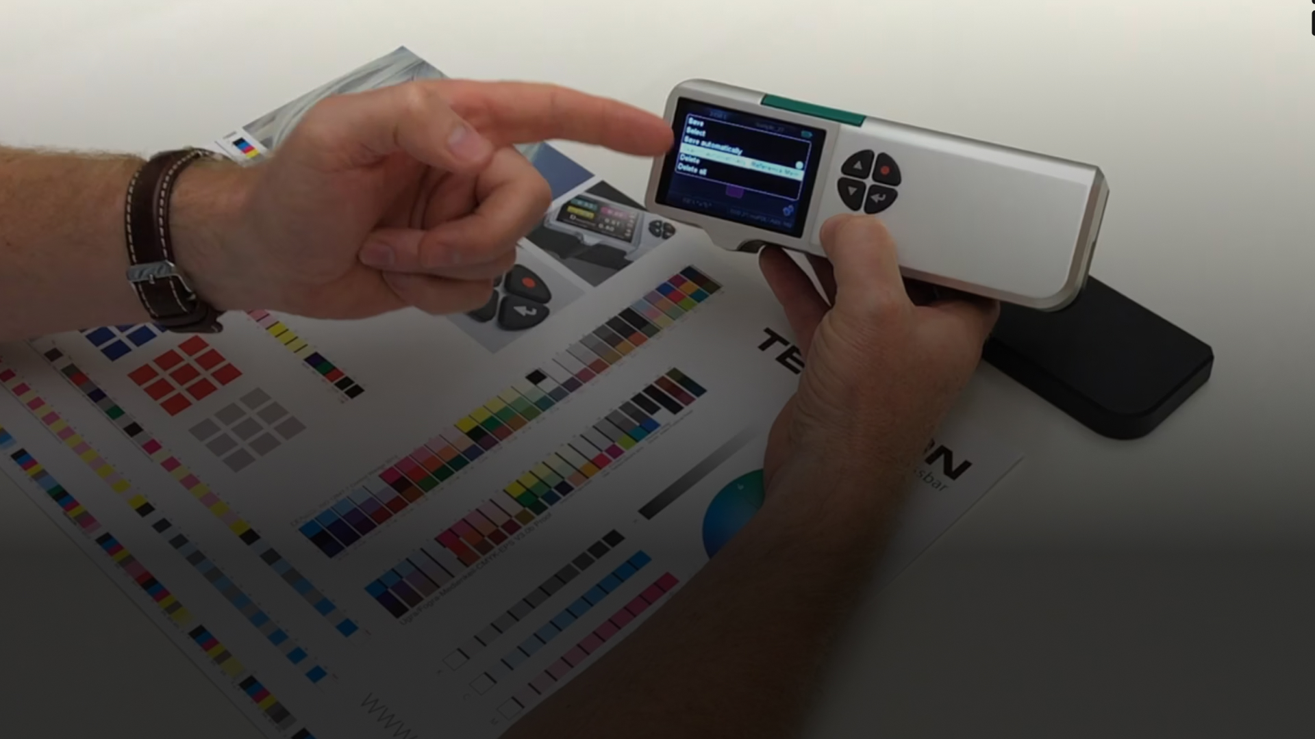 The all-in-one spectrodensitometer SpectroDens 4 helps you control your process, spot, Pantone® & other critical brand colors by measuring solid ink density, % dot area, CIE Lab, deltaE, and more.