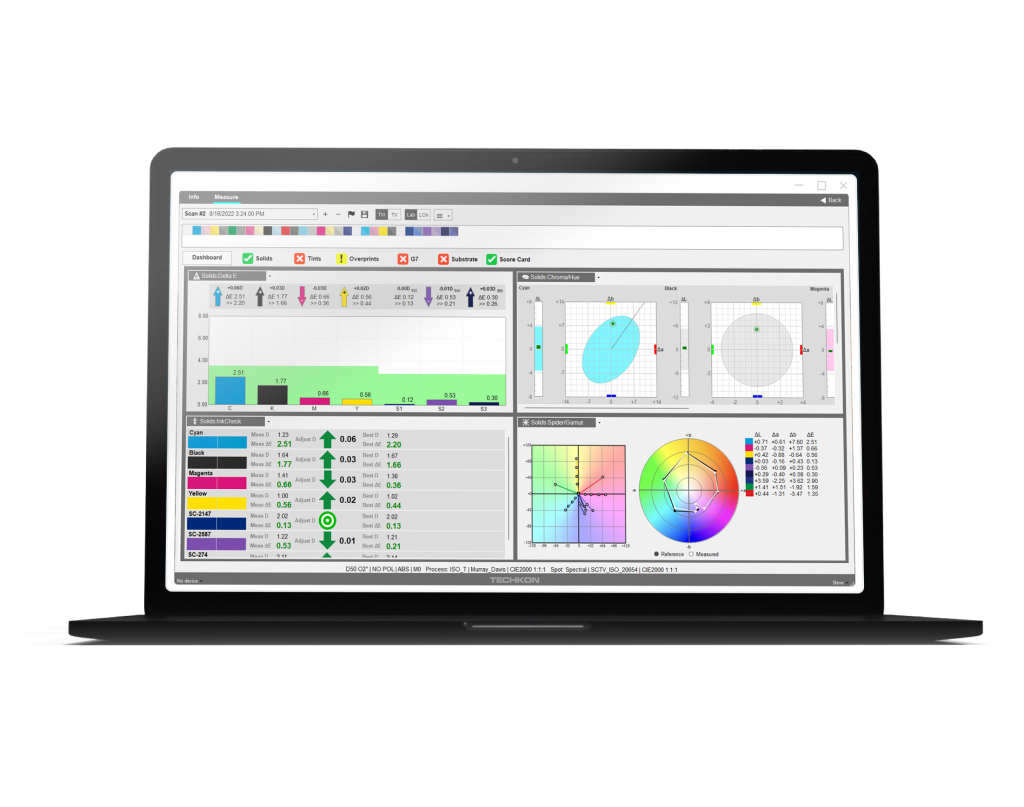 InkCheck™ feature helps press operators minimize color differences (deltaE’s) by providing specific density adjustments to achieve best possible color match