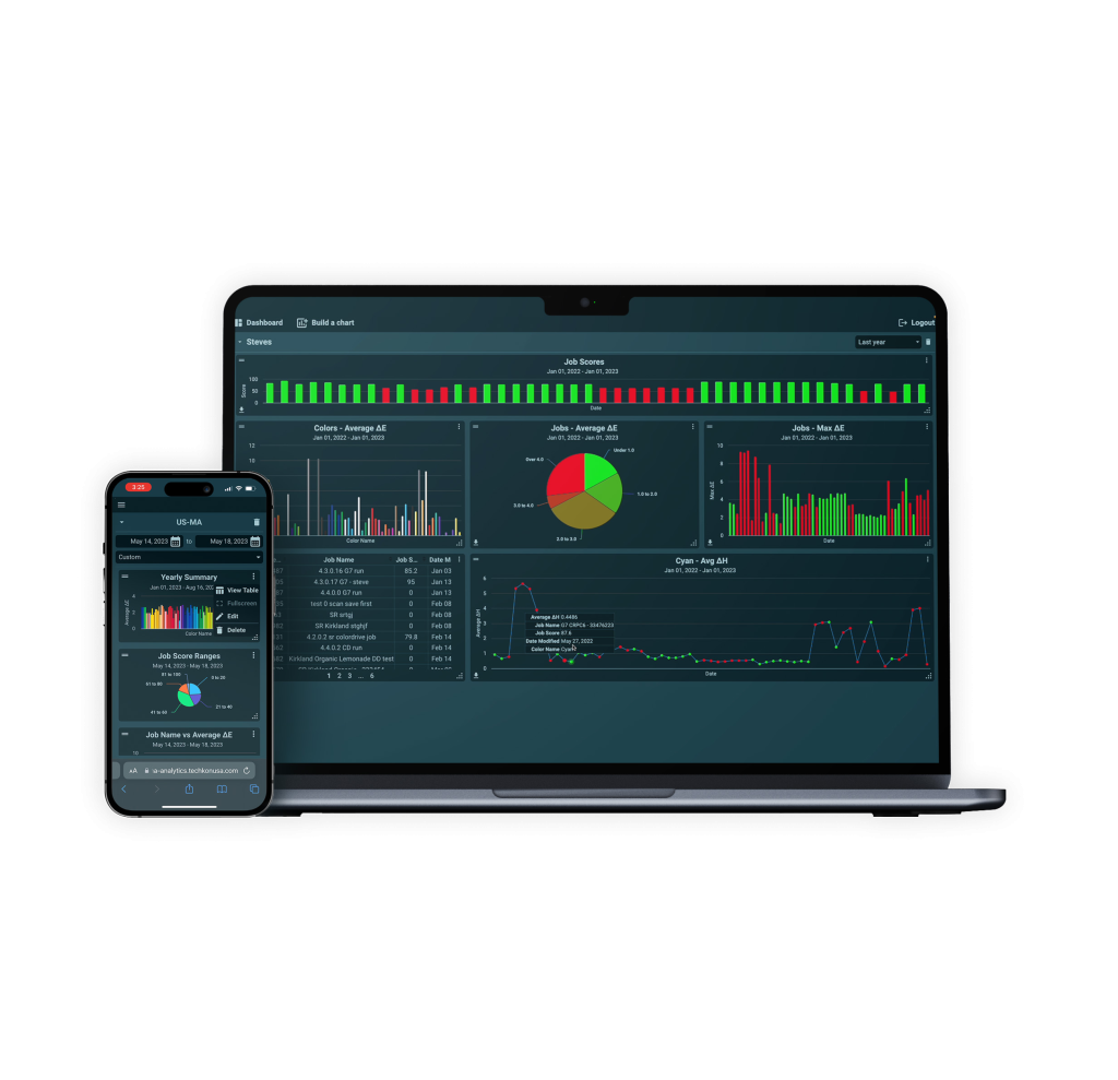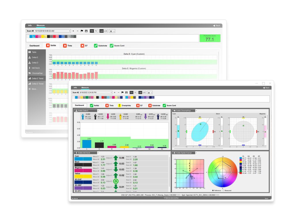 Detect and resolve problems early, ensure roll to roll consistency. Trend charts for density, delta (∆E), TVI, and more monitor the real-time status for operators.