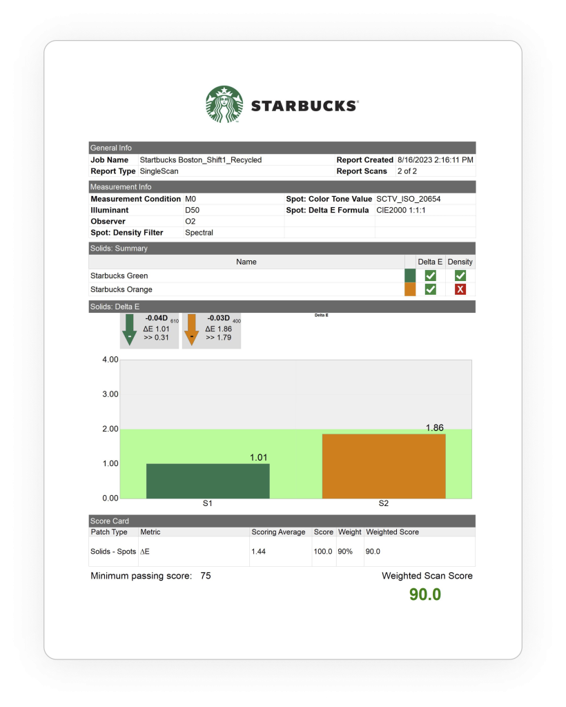 Operators see instant PASS/FAIL & color difference results with intuitive and easy to understand graphics. ChromaQA with SmartInk & InkCheck technology provides ink density adjustments to achieve lowest possible deltaE’s on press.